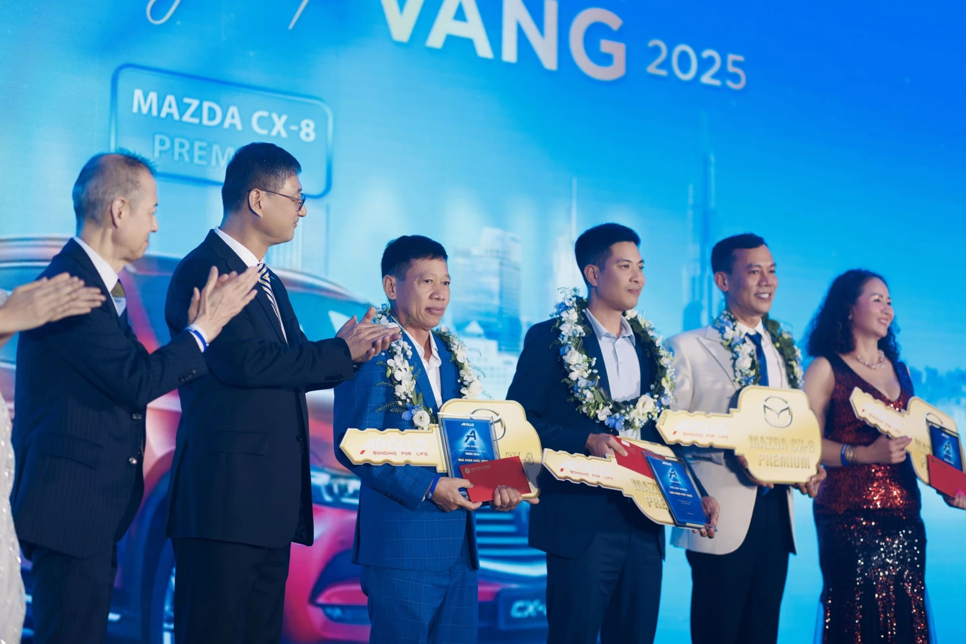 Bên cạnh danh vị Nhà Phân Phối Vàng, Apollo đồng thời trao tặng giải thưởng Đẳng Cấp Vàng với phần thưởng 01 xe Mazda CX-8 Premium cho mỗi Nhà Phân Phối như lời ghi nhận và tri ân dành cho những nỗ lực xứng đáng của Quý Anh/Chị trong suốt năm 2025.